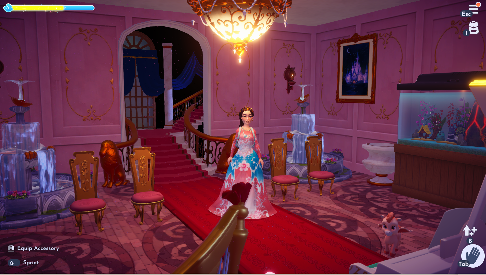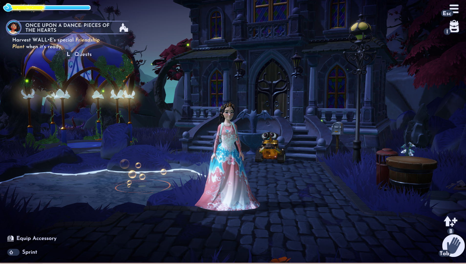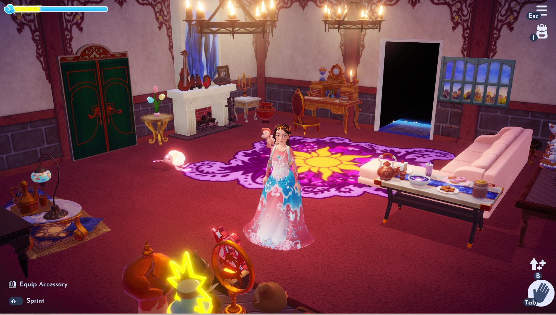 Getting back to the main point of the update, the castle is essentially covered in spiderwebs and dust with flickering lights. Regardless, we see Lumiere right away who thinks it’s a ghost. As we clean up, some mysterious things show up. We then end up heading to the Garden where Cogsworth is and unlike Lumiere, he feels there is a more scientific explanation for all this.