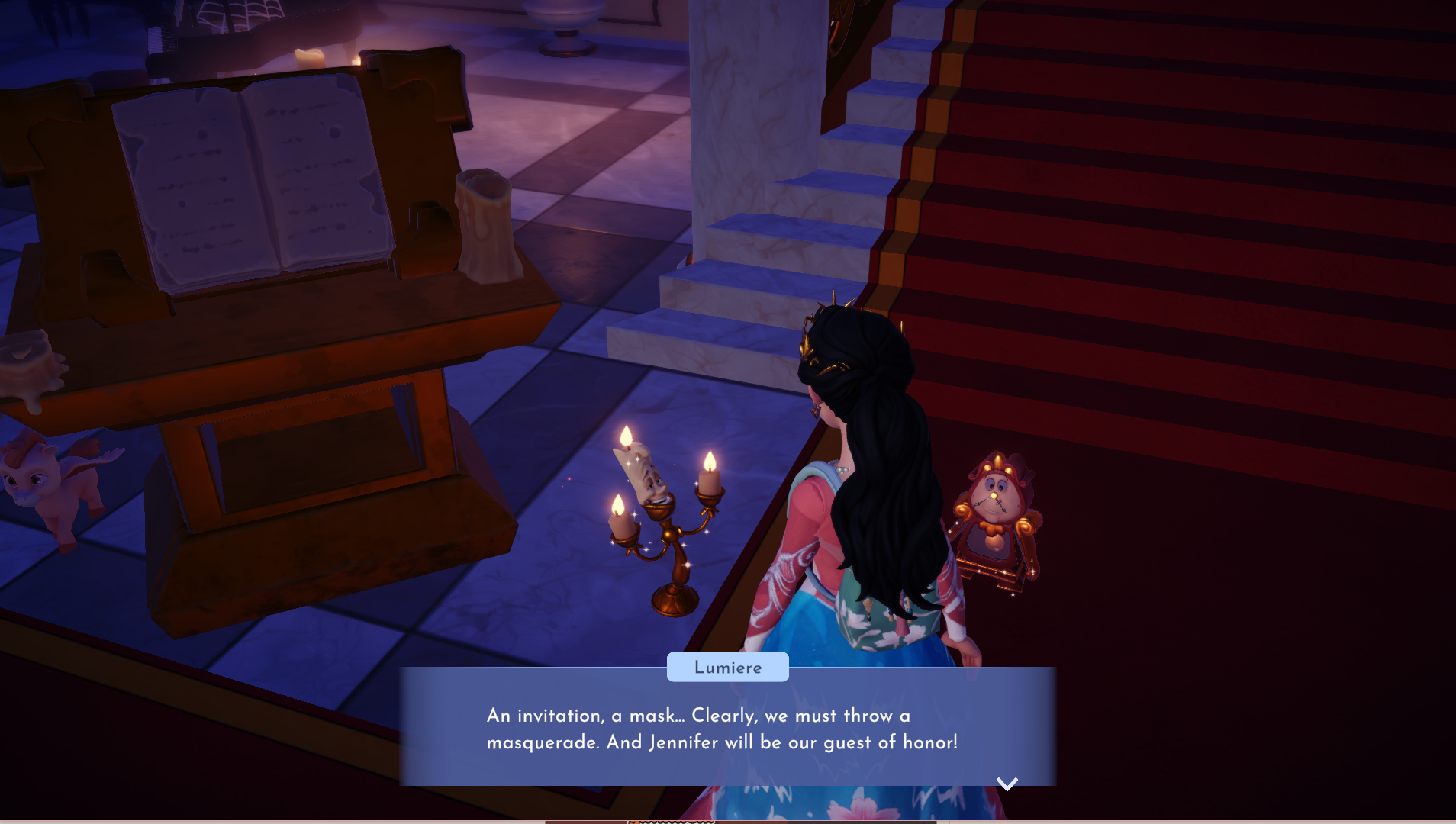 In the end, it’s discovered that the chaos is coming from an invitation you gave Lumiere and Cogsworth to hold onto because our childhood is incredibly depressing. To cheer us up, they try to host a masquerade just for us.