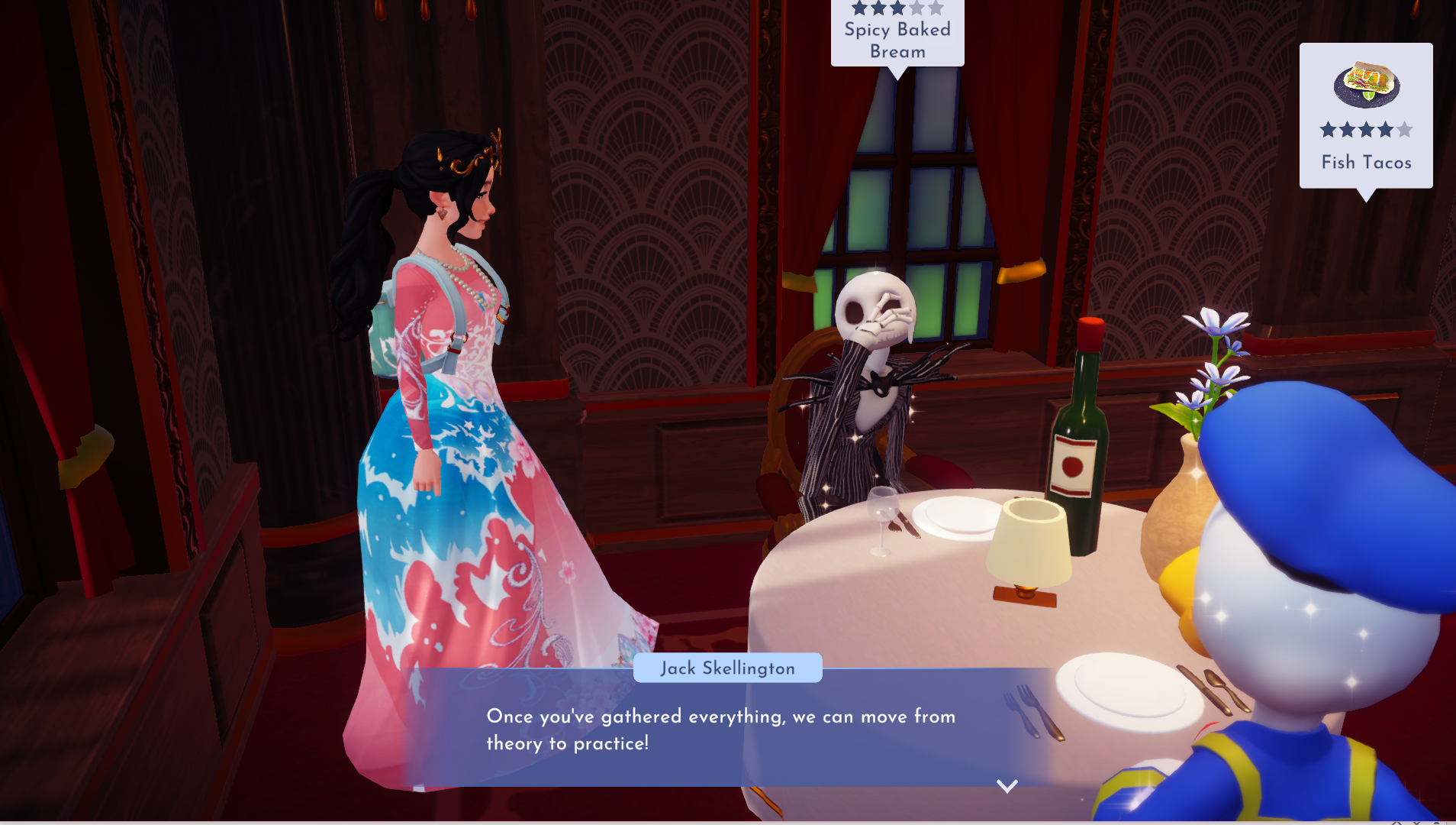 Mirabel wanted to make a community-inspired item, Daisy needed help with her creative process, Kristoff wanted to re-create a quiet hangout moment with the Beast (they walked around and fed the Critters), and Jack Skellington wanted to make a familiar spooky accessory which I honestly hated having to wear.