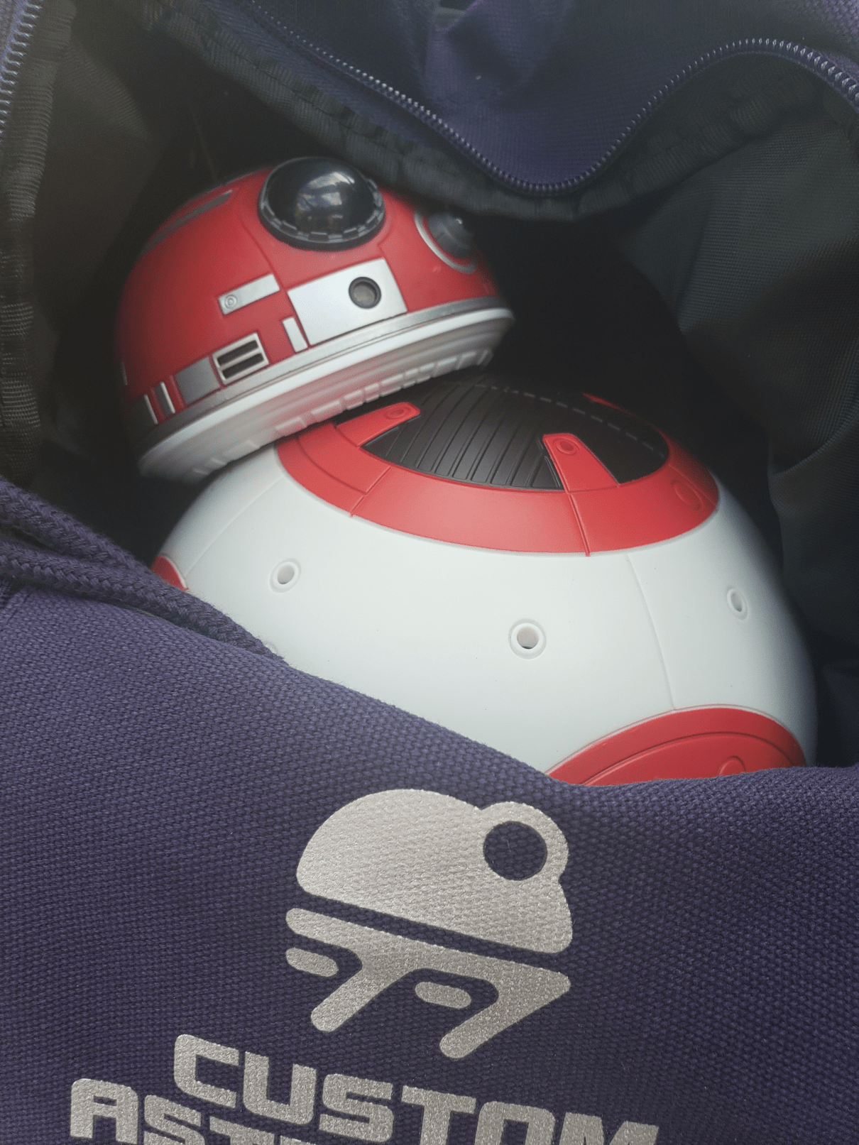 Moving onto things I did BESIDES the Datapad minigame, for one, my husband and I both made Droids! Mine is this cute BB Unit who I still have yet to think of a name of. We even got the bag for it too: