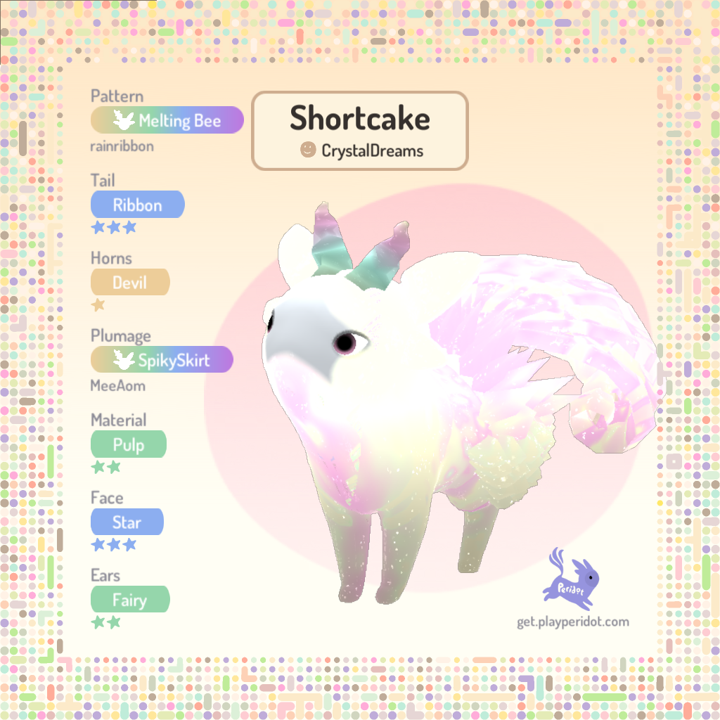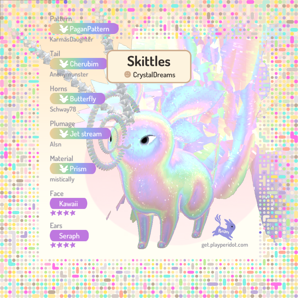 11: Jelly, Medli, Nyan, Chrysina, Fannie, Streamer, Cherryberry, Pizazz, Crinkleheart, Rosehawk, Lisa, Aerith, Seraph, Pinata, Mardigras, Witchy, Ace, Glittertail, Nebulai, Rorschach, Shrimpy, Rosea, Rainbow Brite, Rasora, Overriped, Skyline, Neptune, Spree, Cabaret, Secerna, Shinebow, Skittle, Bananaflower, MidnightSky, SeaSponge, Vaporwave, Spacepuff, Pearl Dragon, PinkSwirls, SugarGalaxy, Shimmerpatch, Gemstone, Flamenco, Valenswirls, Nightwool, Fairybliss