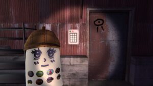 The answer is: Up, Left, Up, Right, Up, Right, Up, Left, Up, You can now jump through the mirror on the other side to interact with a mushroom, but first, the other lock on the door… Simply mirror what you did with the first lock: Up, Right, Up, Left, Up, Left, Up, Right, Up. This gives you a hand for the basement puzzle. Now, after moving the hand somewhere safe, come back and use the mushrooms to get through that tiny window. - Through the tiny window is a bonus puzzle. Putting in your computer’s current time will unlock a cute sneak peek Easter egg. Now, turn yourself big, grab the hand and put it in the little window, turn small again, and grab the hand to move.